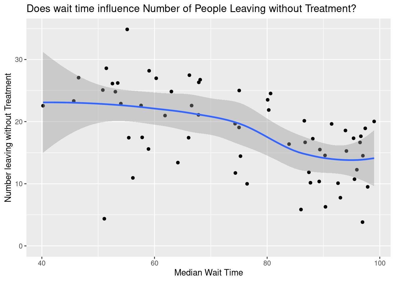 labs(title = "Does wait time influence Number of People Leaving without Treatment?",