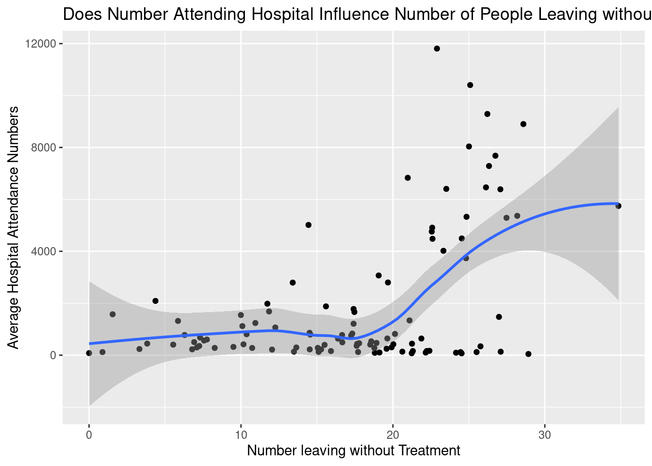 labs(title = "Does Number Attending Hospital Influence Number of People Leaving without Treatment?",