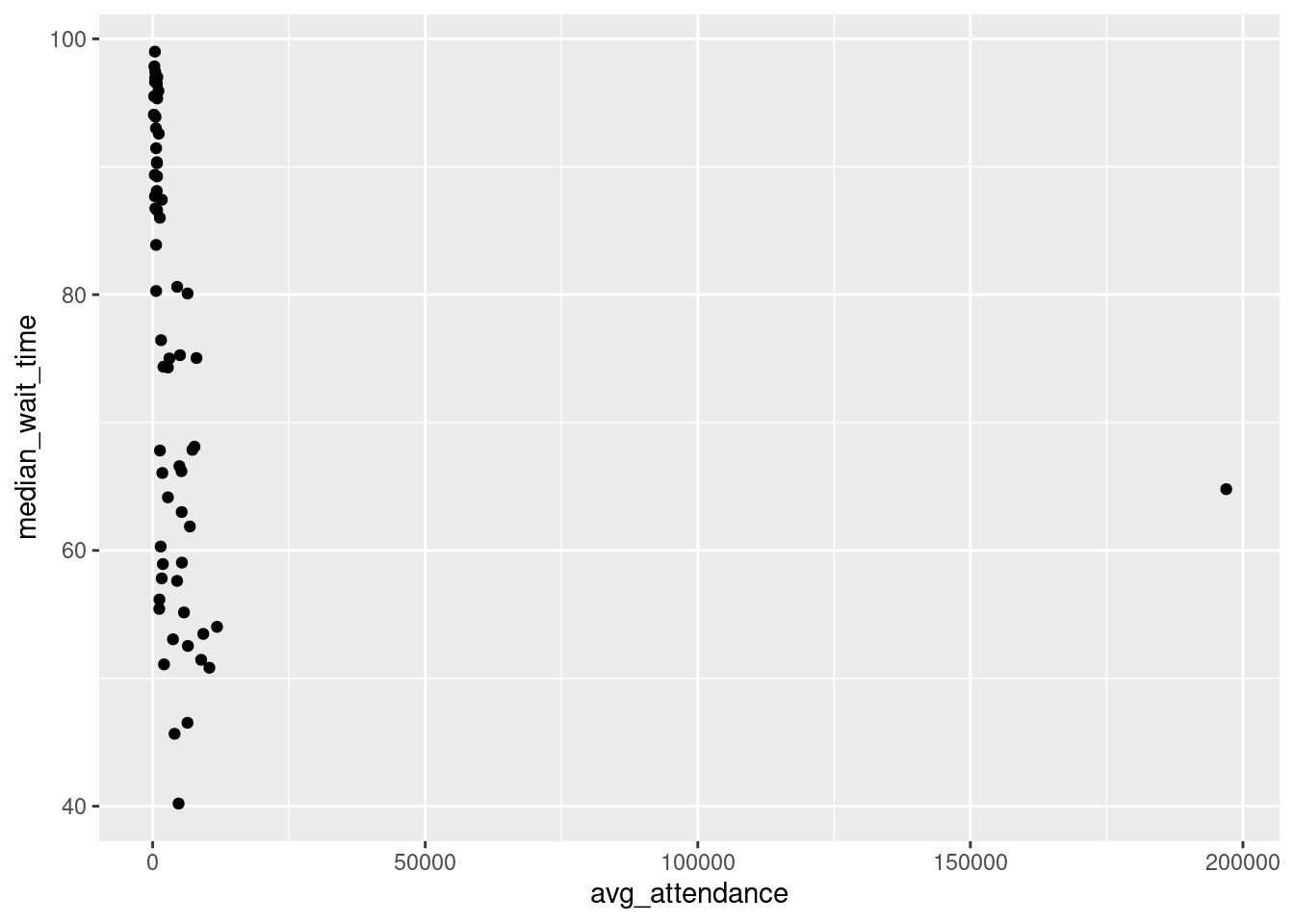 labs(title = "Does Average Attendance Number Effect Median Wait Time?",