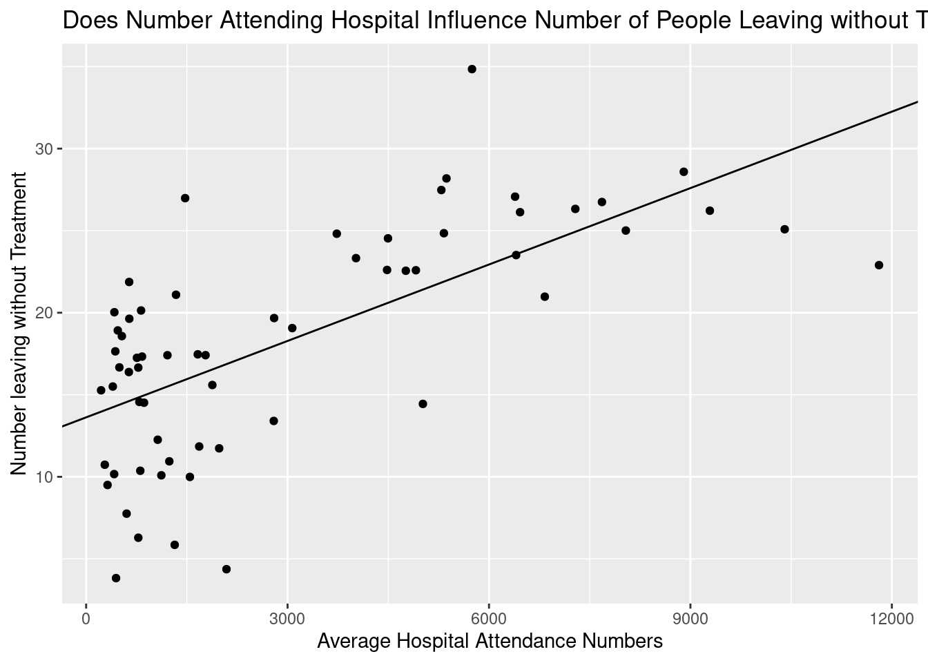 labs(title = "Does Number Attending Hospital Influence Number of People Leaving without Treatment?",