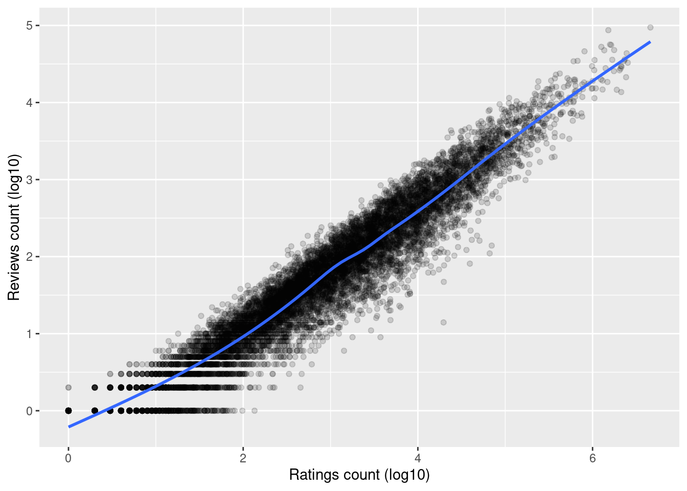 Relationship between rating counts and review counts