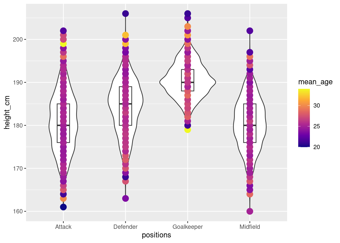 scale_colour_viridis_c(option = "plasma")Area for improvement: Ideally, we can achieve a violin plot with colour gradient