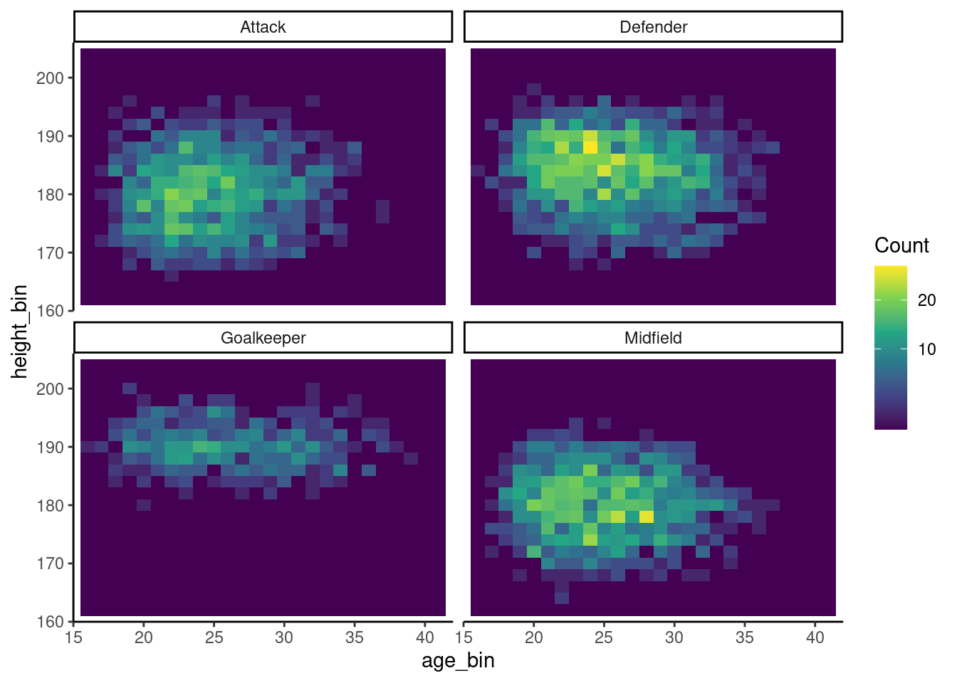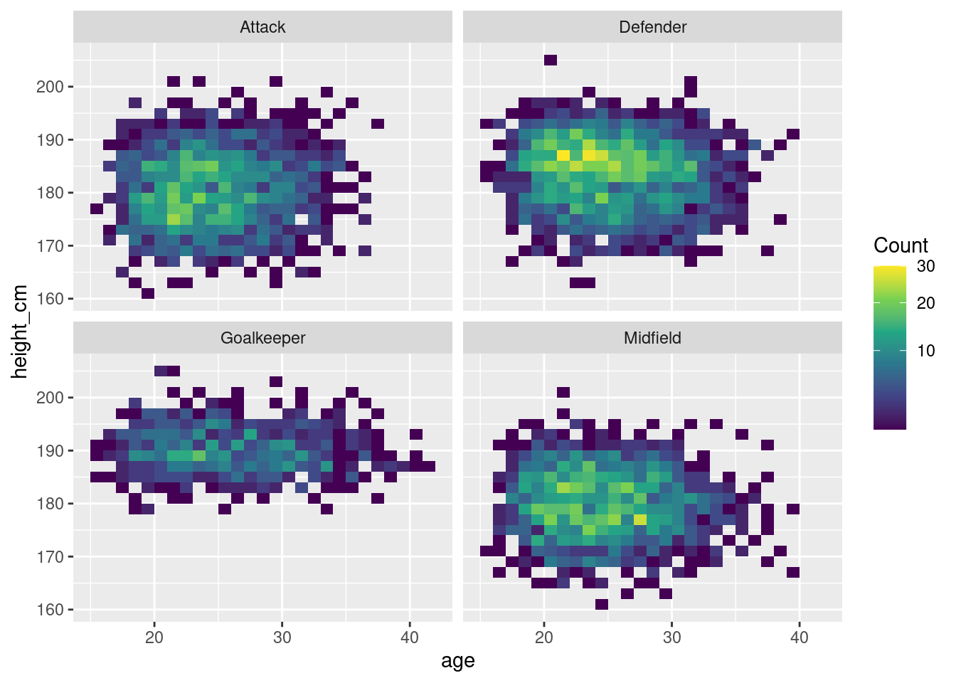 geom_bin2d(aes(fill = after_stat(count)), binwidth = c(1, 2)) + # 1-year x 2-cm bins