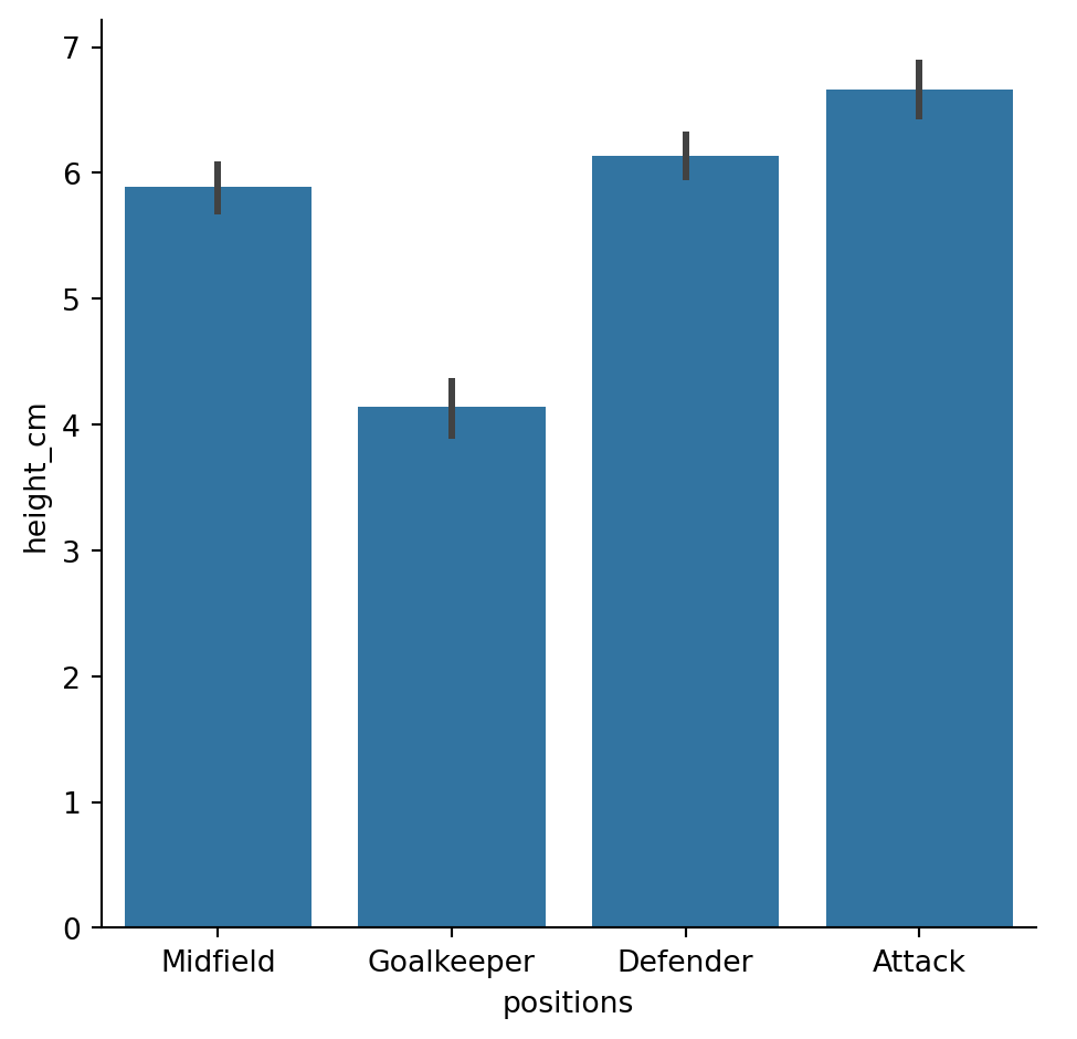It seems like goalkeepers are taller, but not by much. Let’s look at the standard deviation for each position by changing the estimator = parameter (default is mean)