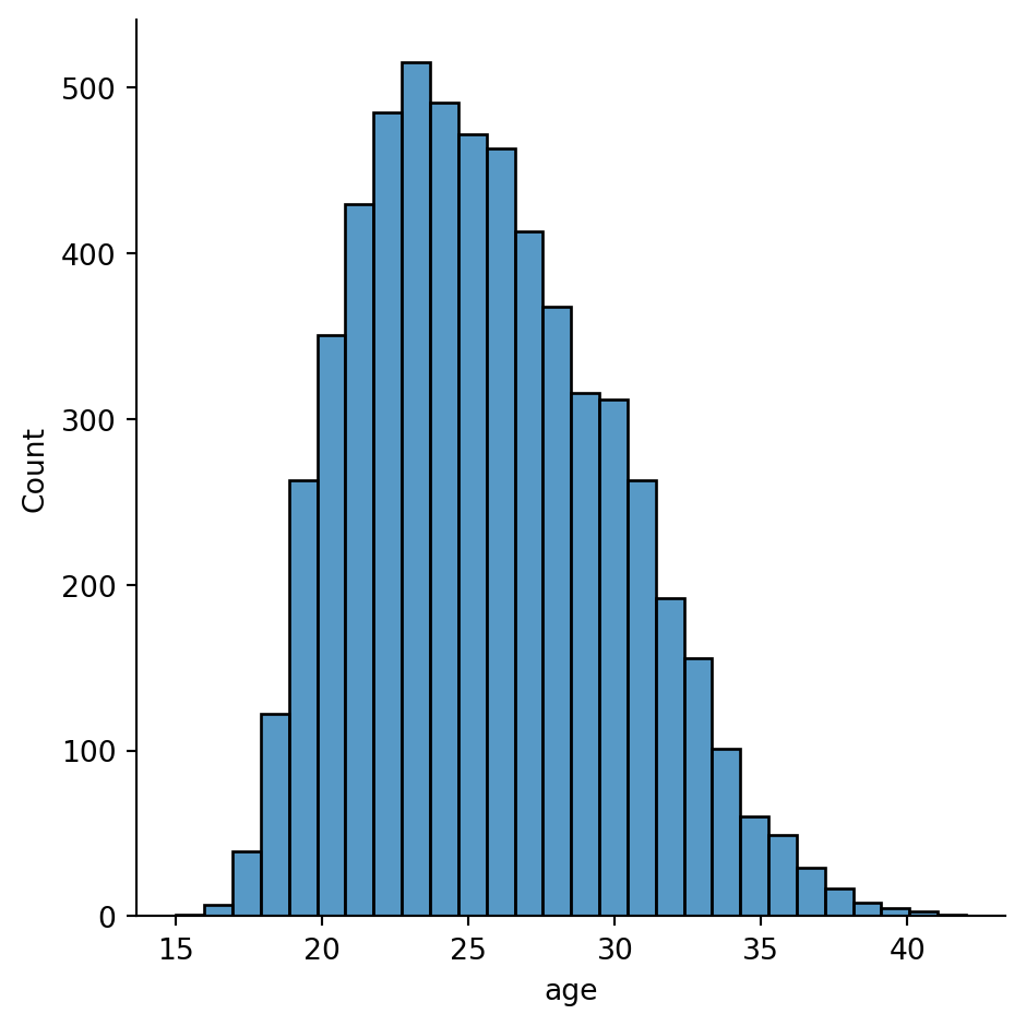 sns.displot(...) # for distributions, e.g. histogramsWe’ll begin with the first.