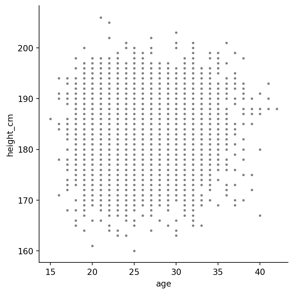 Finally, let’s make the scatter dots smaller with s = 10 and grey with color = "grey".