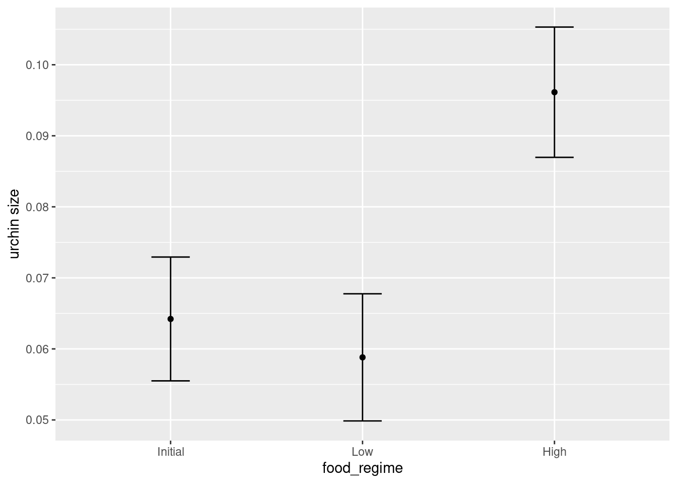 levels = c("Initial", "Low", "High")))urchins # see the data as a tibbleWe have 72 urchins with data on:
