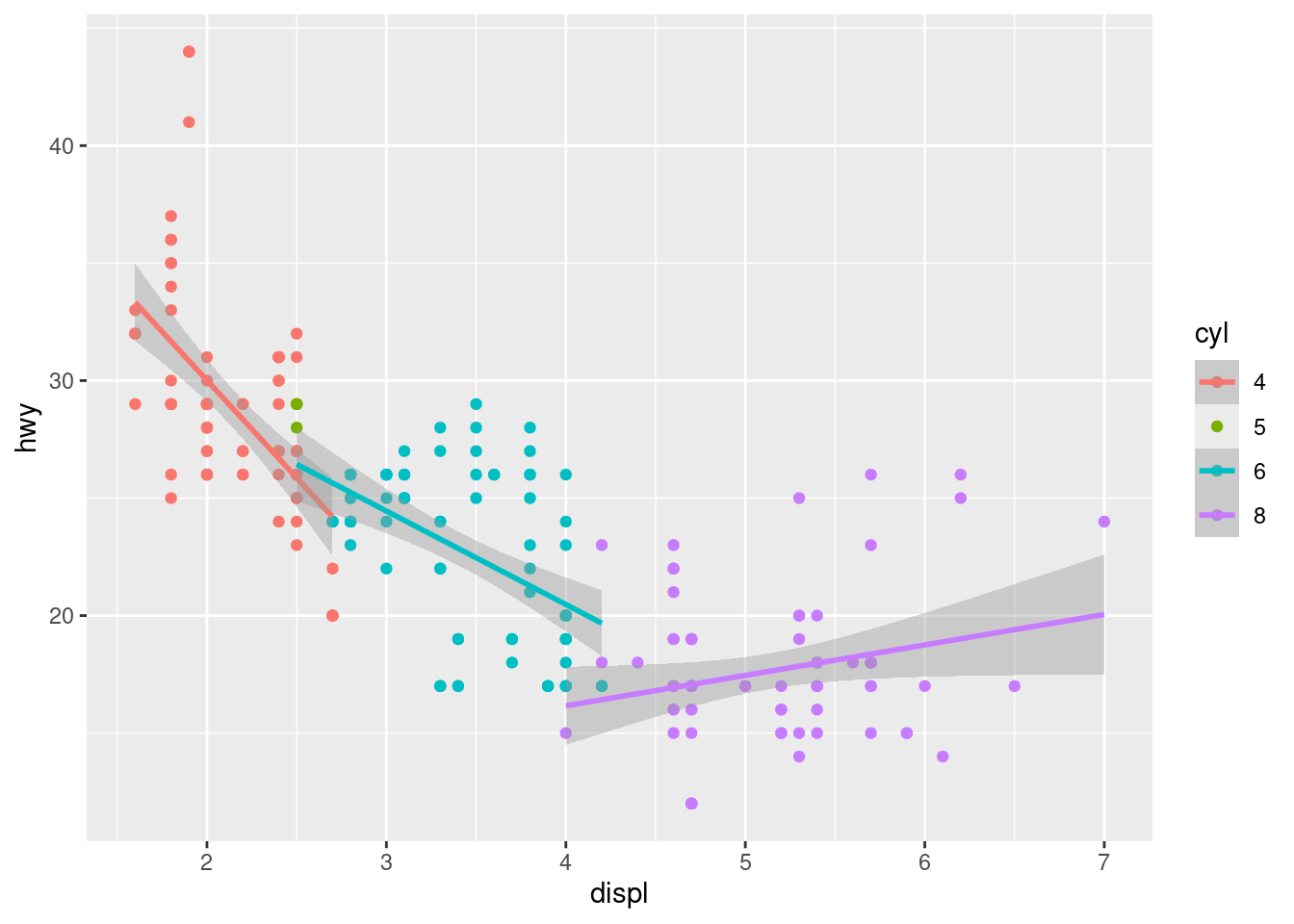 geom_smooth(method = "lm", se = FALSE) # add a linear trend line without a confidence interval`geom_smooth()` using formula = 'y ~ x'